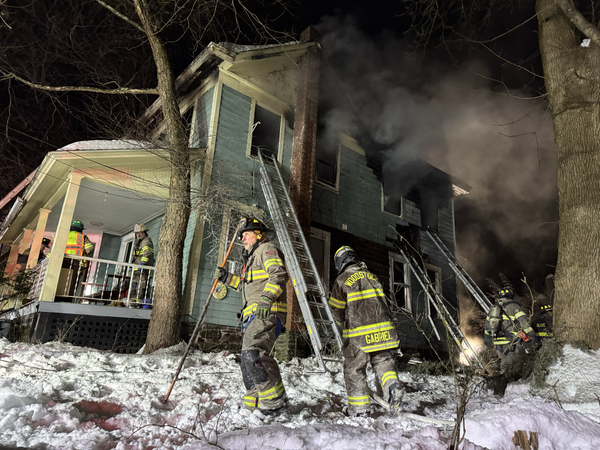The fire broke out at 117 Tinker St., with the first call coming in to the Woodstock Fire Department at 9:44 p.m. Saturday. It was reported as a “fully involved structure fire,” said Woodstock Fire Department First Assistant Chief Kevin Peters. Residents escaped safely, though two cats remain missing. Other residents of the multi-unit building were not home at the time. Fire fighters arriving on the scene found the top floor engulfed in flames with fire blowing out of windows.Firefighters were called back to the scene around 2 a.m. Sunday after a “rekindle” ignited in two areas of the building, Peters said. Crews remained on site until about 9 a.m. as temperatures dropped as low as 4 degrees. Despite the single-digit temperatures, Peters said the extreme weather did not hamper emergency response efforts from firefighters from Woodstock, Olive, West Hurley, and Glasco fire departments.