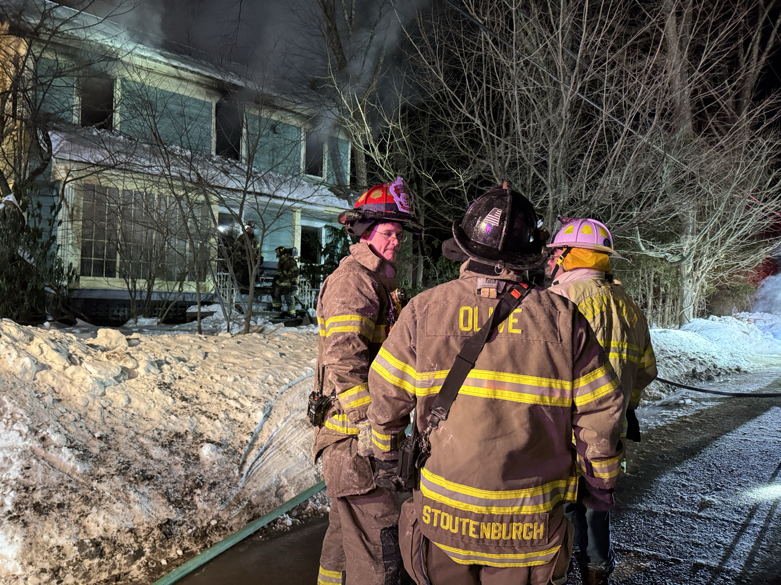 “The neighbor woke up and called 911…it takes ten to 12 minutes to get there. There were probably 100 firemen from different companies — Centerville, West Hurley, Olive, Sawkill, Glasco and Ulster Hose. It was good that they were there…by the time the guys got done with the initial attack, we were pretty spent…there were three fires.”